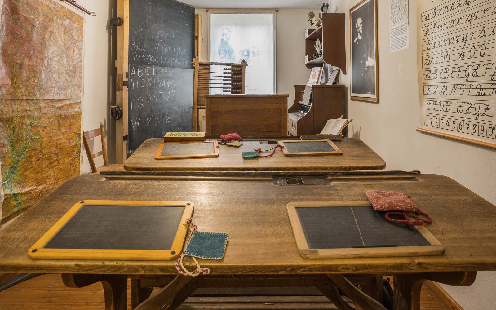 Diesen Raum braucht man nicht näher zu beschreiben. Das kleine Klassenzimmer zeugt davon, dass in diesem Gebäude bis 1954 Loßburger Kinder ihr zu „Hause“ hatten.
